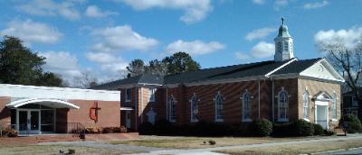 | BLACK 30-YR ARCHITECTURAL SHINGLES ON CHURCH IN BURGAW,NC. |